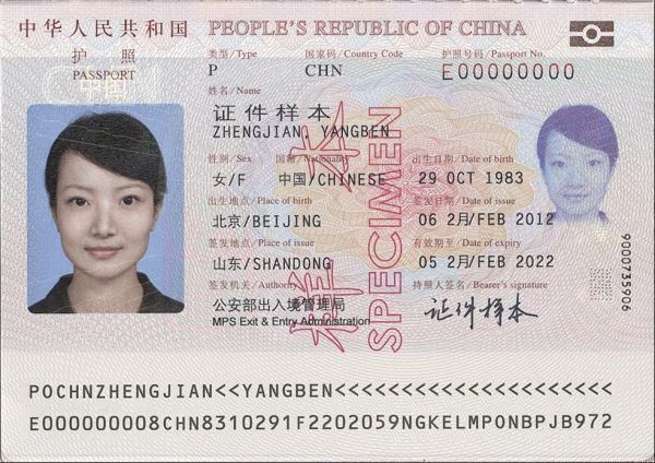 1. 中国护照 —— 首次签发日期为 02/02/2013